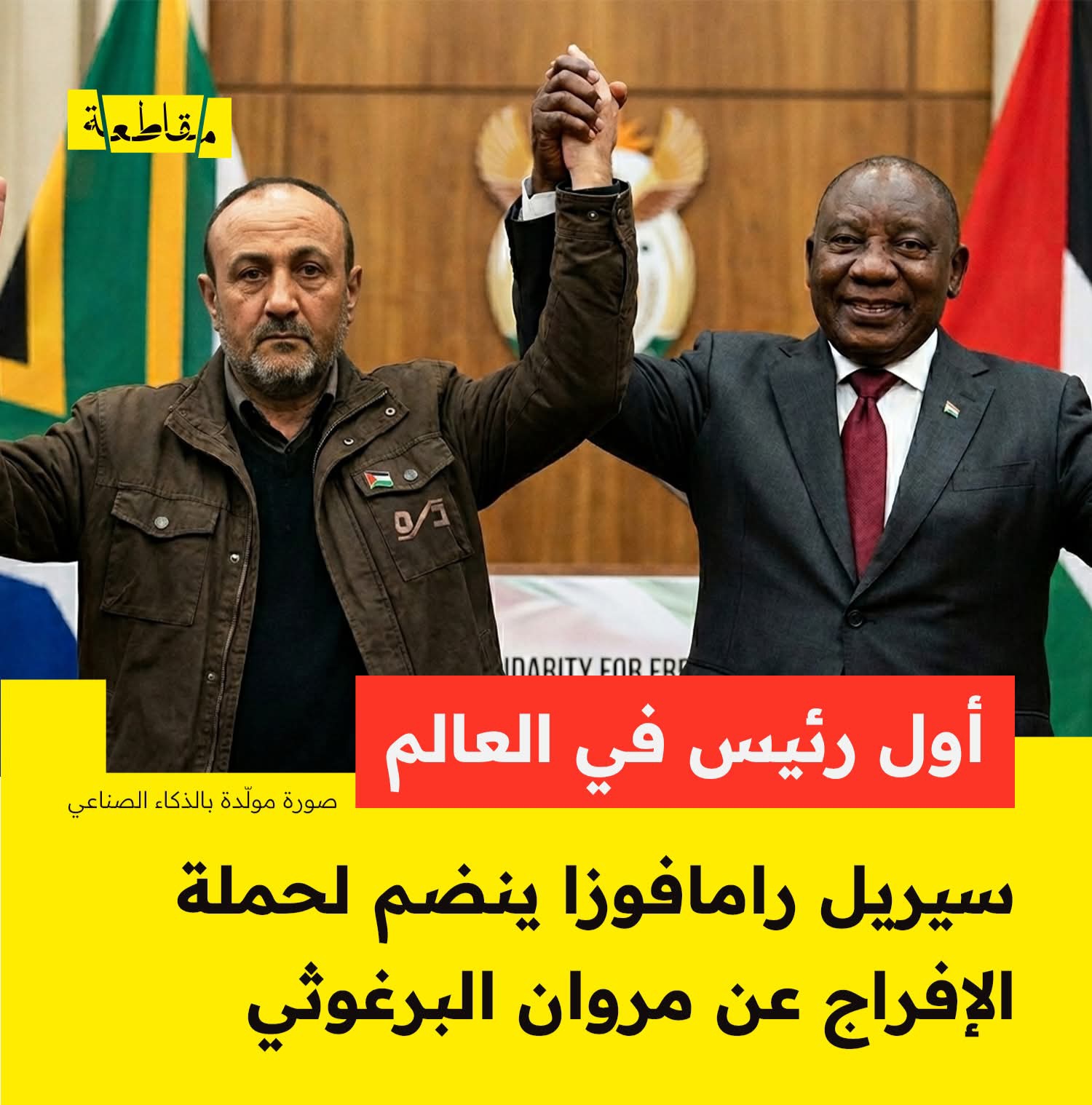رئيس جنوب افريقيا أول رئيس دولة ينضم إلى ''حملة اطلقوا سراح مروان البرغوثي''